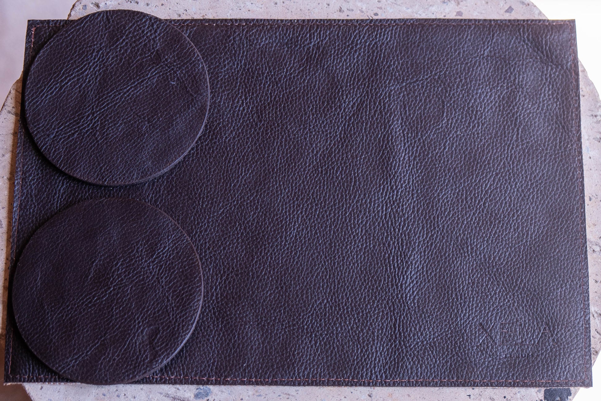 Elevate your dining experience with this luxurious place mat, exclusively designed by Xela. Handmade in Yucatán, it features a rich combination of chocolate leather and yute, offering a beautiful blend of texture and elegance. This versatile mat is designed to be used on both sides, adding a touch of sophistication to any table setting. Perfect for everyday use or special occasions, it brings artisanal craftsmanship and timeless style to your space. Other leather colors are available upon request, allowing you to customize the look to suit your decor.