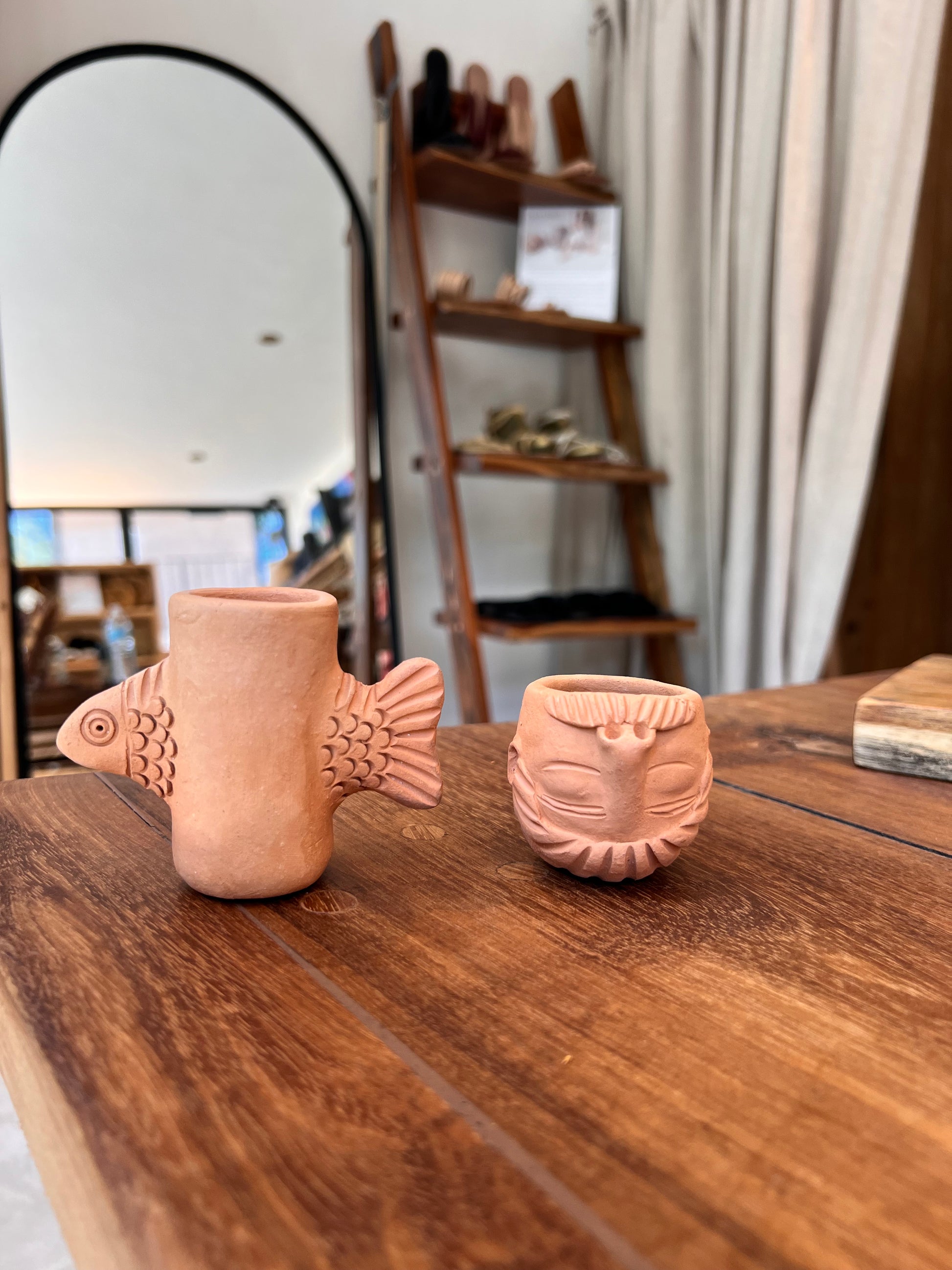 Bring a touch of playful charm to your next mezcal tasting with these unique shot glasses, handmade in Oaxaca. Crafted from clay and shaped into quirky, fun designs, each glass adds personality and a dash of humor to your gathering. Perfect for serving mezcal or tequila, these artisanal pieces combine traditional craftsmanship with a modern twist, making every sip an enjoyable experience. Whether for yourself or as a gift, these mezcal shots are sure to bring smiles and great memories.